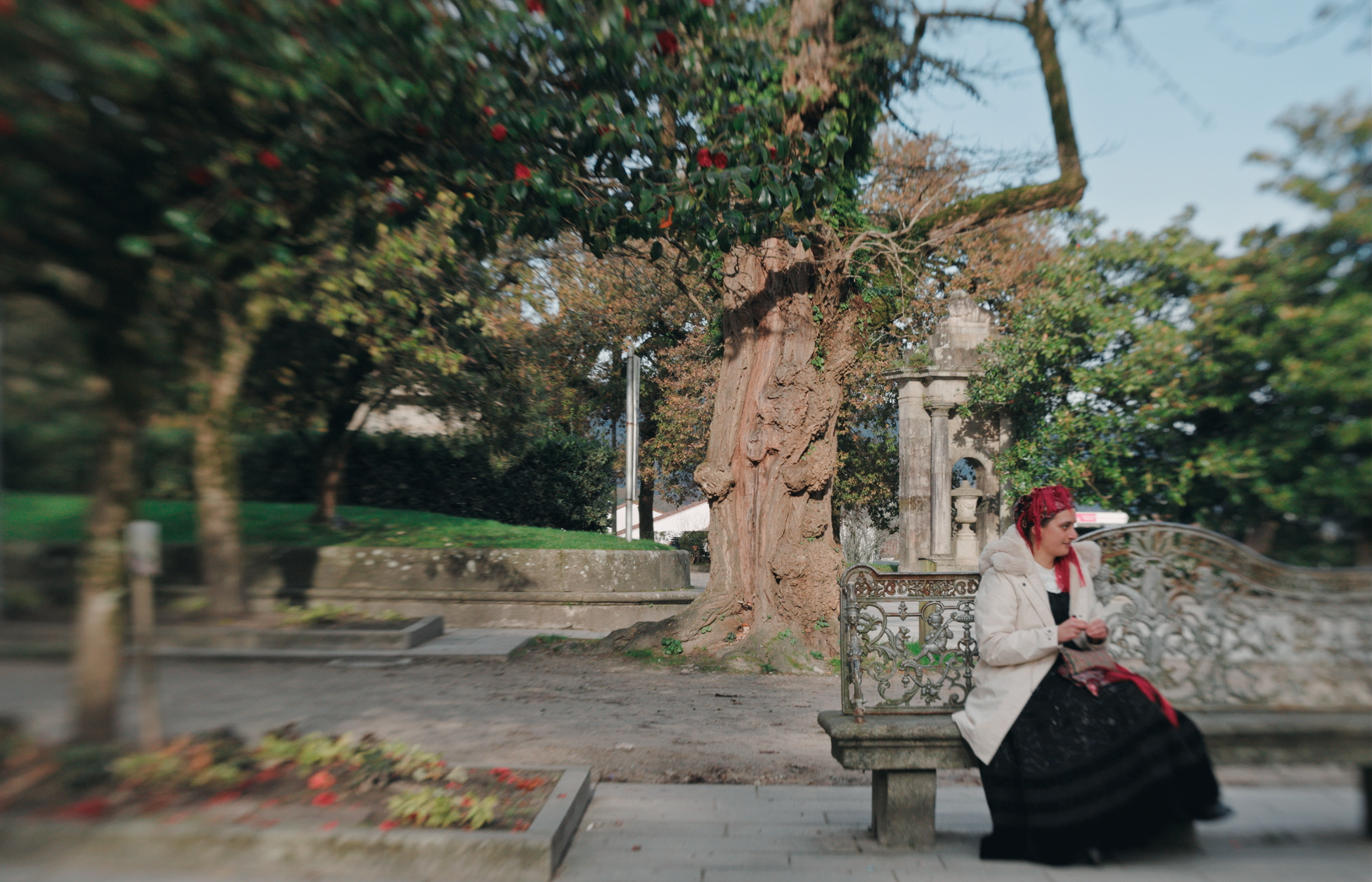 La ciudad de Santiago de Compostela nunca se presenta en Después de las ciudades como un lugar estable, sino que se erige como una superposición de miradas mediadas: atravesada por distorsiones, mostrada con recorridos virtuales o fotografías anónimas que la desdibujan y deslocalizan. Frente a esa distancia creada por la imagen, irrumpen, físicamente, las palabras, leídas en el presente pero extraídas de postales escritas desde y hacia Santiago en otros tiempos, que dotan a lo urbano de una densidad íntima y concreta que logra verdaderamente situarlo. La ciudad emerge así no como entidad física, sino como un dispositivo de memoria donde confluyen temporalidades heterogéneas. (Irene Castro)