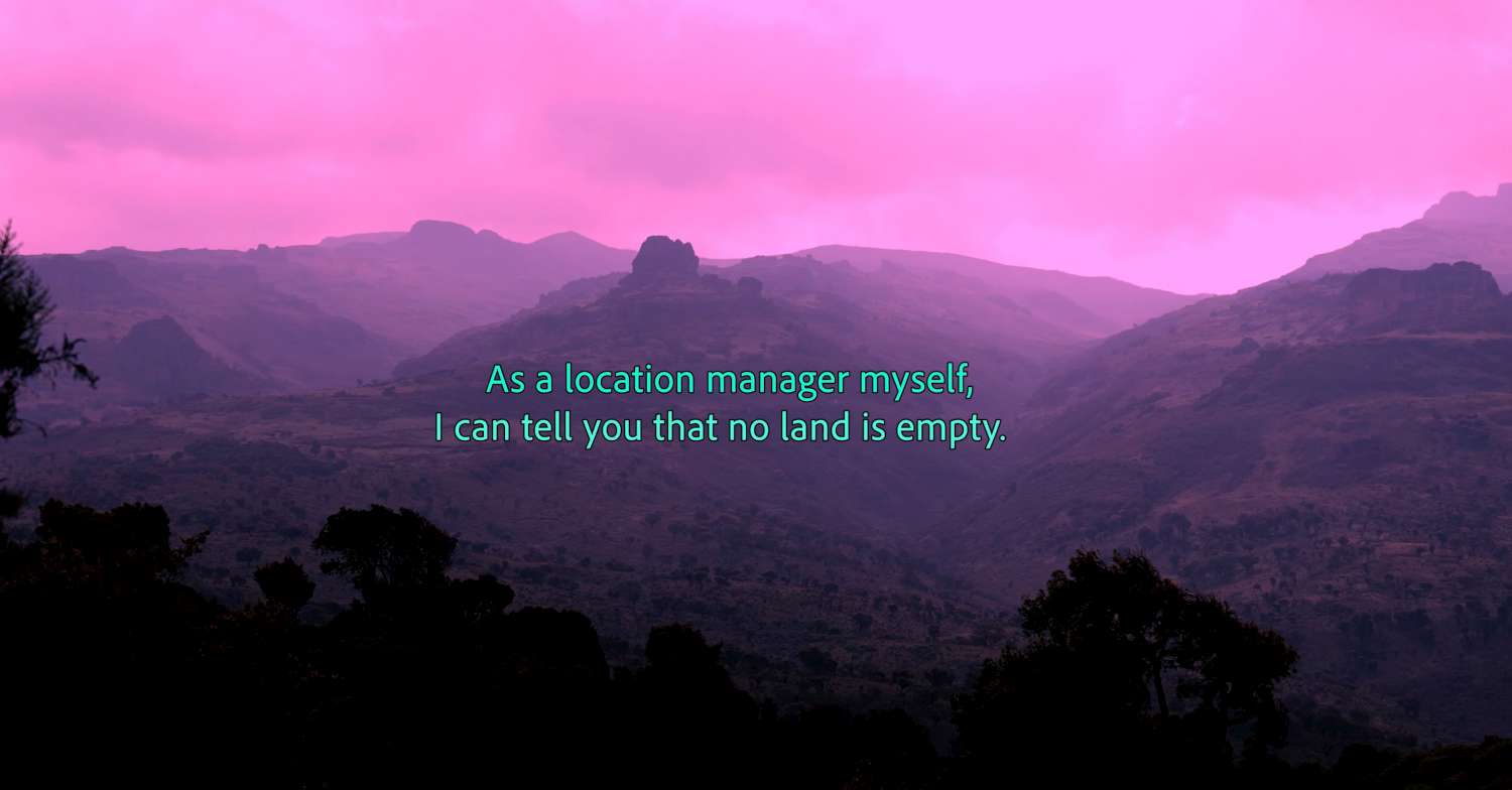 A través de correos electrónicos, imágenes de localización y materiales de archivo, The Recce sigue el proceso de gestación de una película que nunca llegará a realizarse. En el corto, un director busca localizaciones en Uganda para recrear una expedición colonial de principios del siglo XX, pero en el proceso de conceptualización de su obra, acaba cerca de repetir las lógicas que pretendía denunciar. La película cuestiona así la supuesta neutralidad del dispositivo cinematográfico: el cine se revela como práctica que puede intervenir e imponer relaciones de poder sobre los territorios que retrata. (Irene Castro)